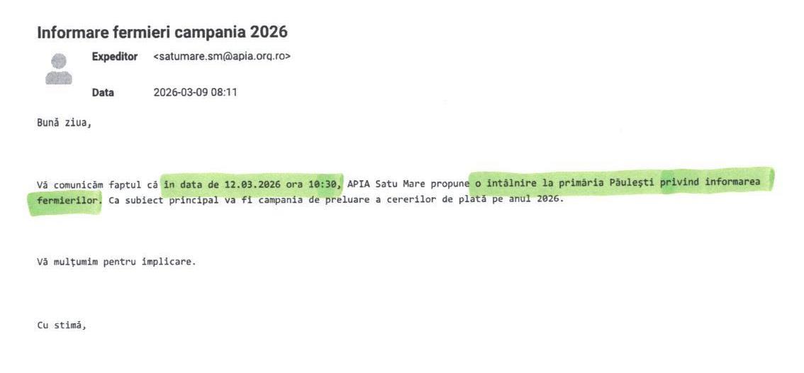 instiintare fermieri actiune de semanat cu seminte tratate